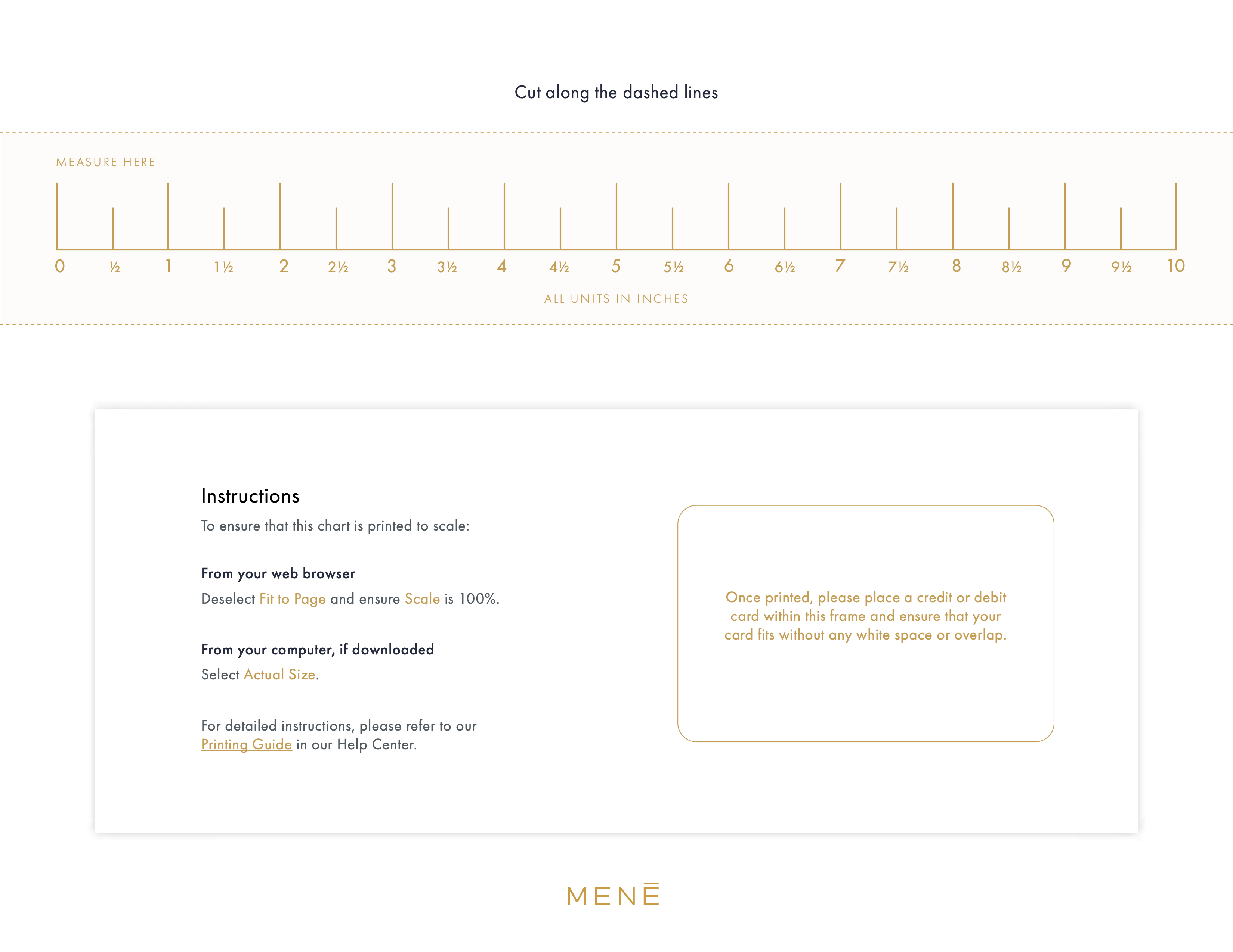Measure your wrist's circumference just above the wrist bone with a flexible tape measure to determine your bracelet or cuff size. Should you not have a tape measure handy, we offer a printable version for your use. This article provides more detailed printing instructions.